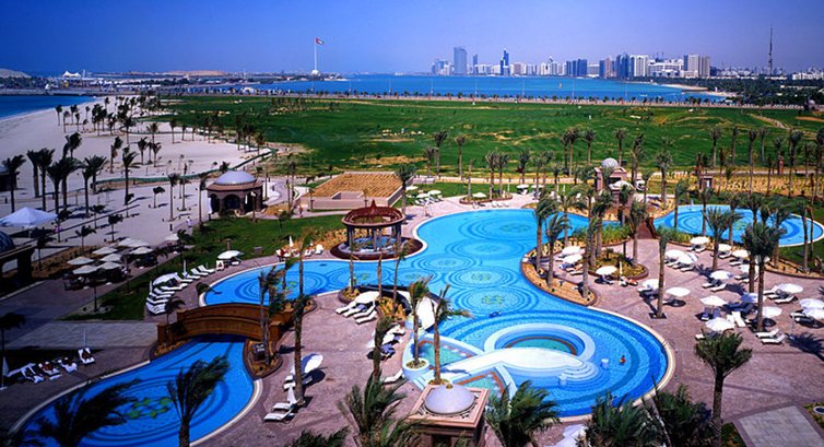 Роскошный отель; управляется сетью Kempinski и принадлежит правительству Абу Даби. В отеле есть номера, в которых размещаются только официальные лица – гости правительства (только 50% проживающих в отеле туристы). Практически единственный отель в центральной части Абу Даби с действительно хорошим пляжем (в непосредственной близости от пляжа нет ни насыпных островов, ни строительства). У отеля огромная территория – около 1 000 000 кв.м. Только 15% территории занято непосредственно отелем, остальная часть – ландшафт. Депозит в отеле составляет 300 $ в сутки за номер.