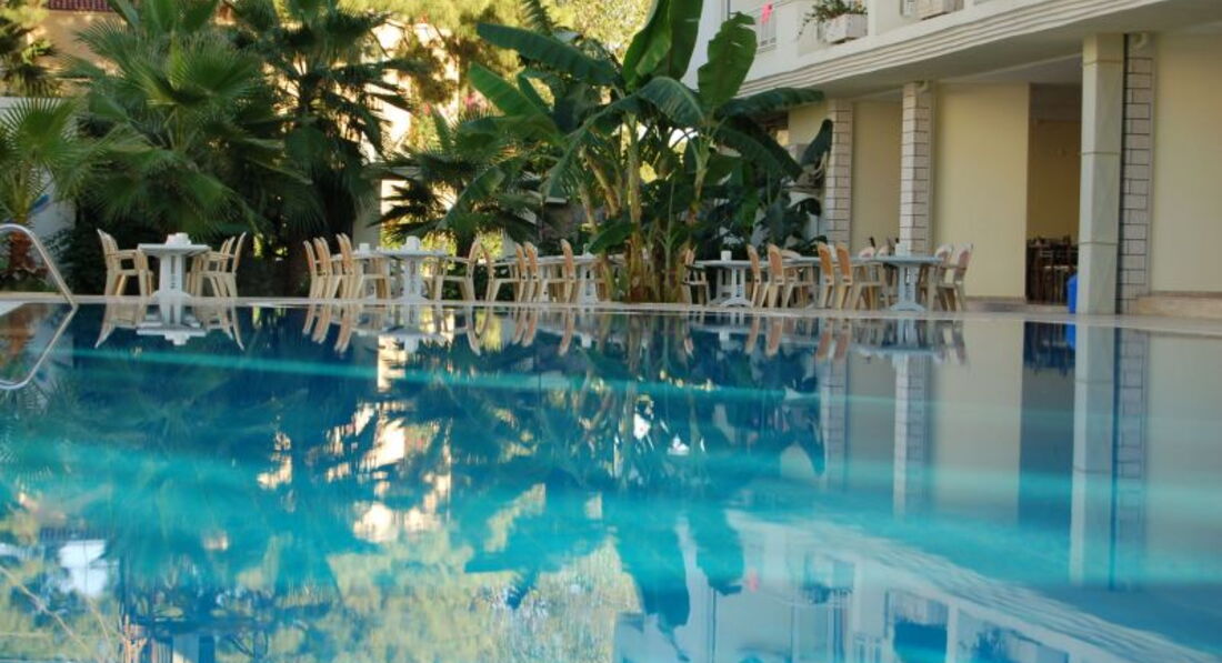 Поехали отдыхать очень бюджетно, этот отель оказался одним из самых дешёвых, и отзывы неплохие. В целом всё понравилось - чистые номера без запаха, мебель не старая, работающий кондиционер и фен, проблем с горячей водой и уборкой не было. Нормальная еда, очень понравилось то, что каждый вечер жарят на гриле мясо или рыбу. Фрукты каждый день. Очень приветливый персонал, денег не вымогали. Лучше выбирать номер с окнами на дорогу, а не на бассейн - ночью со всех окрестных отелей бахает музыка. Рядом остановка и магазины, самостоятельно на автобусе ездили в Кемер и Анталию, недалеко находится дикий пляж. Так же полазили по горам, природа там шикарная. Ночью можно пойти на дискотеку. В отеле отдыхал разный контингент людей, мы нашли хорошую компанию. В общем, нам, как молодой активной паре, очень понравился отдых. Номер - чистый, еда - вкусная и разнообразная, море - чистое, вокруг - шикарная природа. Отель не для тех, кто проводит всё время на пляже и на отельной территории, анимации там нет. Кстати, чистый бассейн, но вода была холодная. И вокруг располагается апельсиновая роща, нарвали себе домой свежие апельсинки)