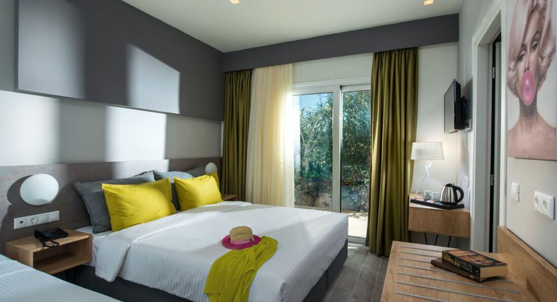 Типи номерів: Standard room (осн. ліжко - двоспальне (2 односпальні - на запит), дод. - односпальне, макс. 3 чол., 16-20 м2). Junior Suite (основне ліжко – двоспальне (2 односпальні - на запит), макс. 2 чол., 24 м2).У номері: сейф: у номері, безкоштовно набір для приготування чаю/кави зміна білизни: 3 рази на тиждень банні приналежності кондиціонер: індивідуальний зміна рушників: 3 рази на тиждень прибирання номера: щоденно телефон підлога: керамічна плитка балкон або тераса фен: у номері, безкоштовно ТБ: супутникове Інтернет: Wi-Fi, безкоштовно міні холодильник