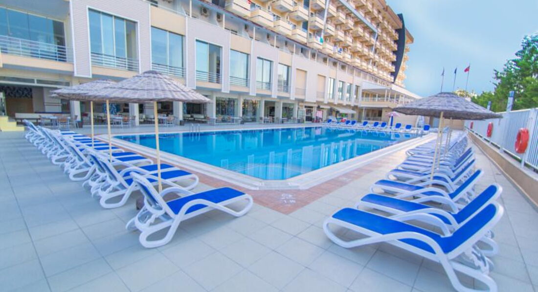 Хороший отель, соответствует своей 4*. Приехали в отель около 11.00, пришлось немного подождать на ресепшене (было очень много уезжающих и приезжих). Заселили в номер на четвёртом этаже с видом на море, хотя бронировали с видом на город. Номер просторный, чистый, с хорошим ремонтом и хорошей мебелью. Уборка номера и замена полотенец была раз в два дня, это конечно минус. Но и ехали мы не в 5*, поэтому были готовы. Питание было хорошим, достаточно разнообразным, много выпечки, национальных сладостей очень много, разнообразные фрукты. В отеле отдыхали всего несколько семей из России, остальные иностранцы. По вечерам была анимация, но понравилась не очень, все было однообразно. В отеле не было русскоговорящего персонала, за исключением пары ребят из Казахстана (бармен и пару официанток), был ещё один турок в хаммаме говорящий на русском языке. Поэтому при возникновении каких-либо проблем можно было обратится к ним с вопросами. Но у нас их не возникло на протяжении всего отдыха.