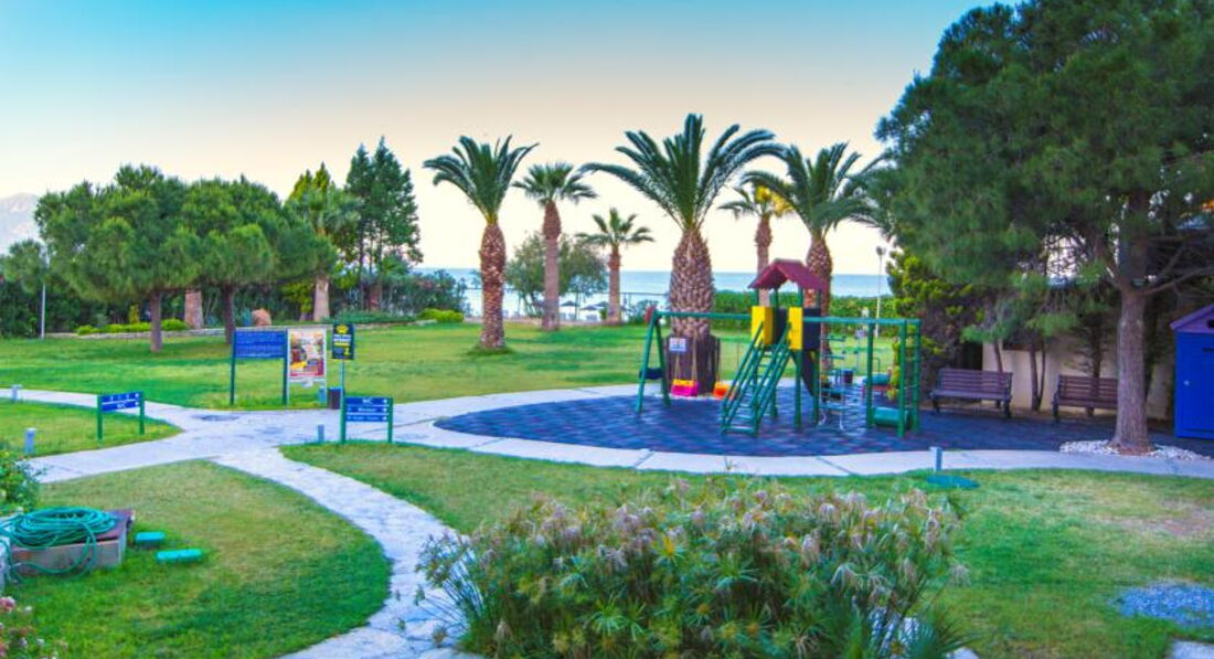 Отель понравился. Расположен в достаточно тихом месте. Компактная территория, но на ней есть все, что нужно для отдыха: и бассейны (маленький и большой), и детская площадка, и магазинчики, и большой зеленый газон с лежаками, где можно позагорать. Море очень близко, метров 100 от главного корпуса максимум. Лежаки, матрасы бесплатно, полотенца по специальной катрочке, но у нас они были бесплатные. Обслуживание хорошее, перонал вежливый и предупредительный, но ненавязчивый. Но по-русски не говорят.