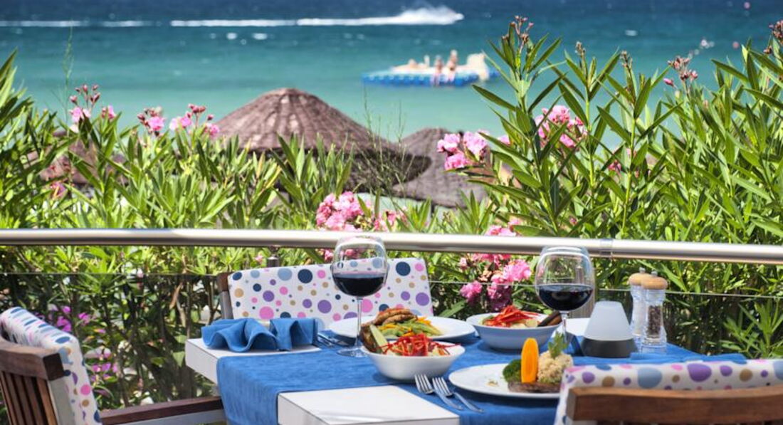 Всем здравствуйте. Отдыхали семьёй в общем отель хороший на 4* тянет но по цене на 4 человека за 260 тыс в августе на 11 ночей конечно дороговато. Привезли в отель в 10 утра нас сразу накормили и в пол 12 нас уже заселили. РУССКО ГОВОРЯЩИЙ ИЗ ПЕРСОНАЛА ТАМ НЕТУ. Если по английскому не разговариваете будет сложновато вам. В отеле в основном одни местные турки. Отдых семейный, спокойный. По еде говорить нечего все хорошо все постоянно что то разное. По алкоголю: крепкие напитки хорошие, а вот вино среднечком. По уборке номера тоже косячут(дня 2-3 за весь отдых не уберали), мы особо на это не смотрели потому что мы в номере не сидели. Пляж грязноват убирают плохо. Море дня 3 пребывало водоросли. В бассейн мы не ходили но там как в муравейнике народу тьма. На пляжу нужно забивать лежаки с утра после завтра уже все занято. От аэропорта бодрум ехали 2.5 часа. Решайте сами отель не плохой но есть не большие минусы