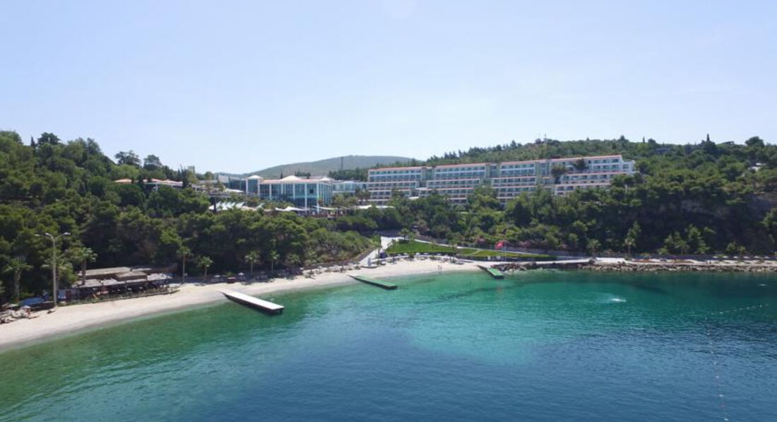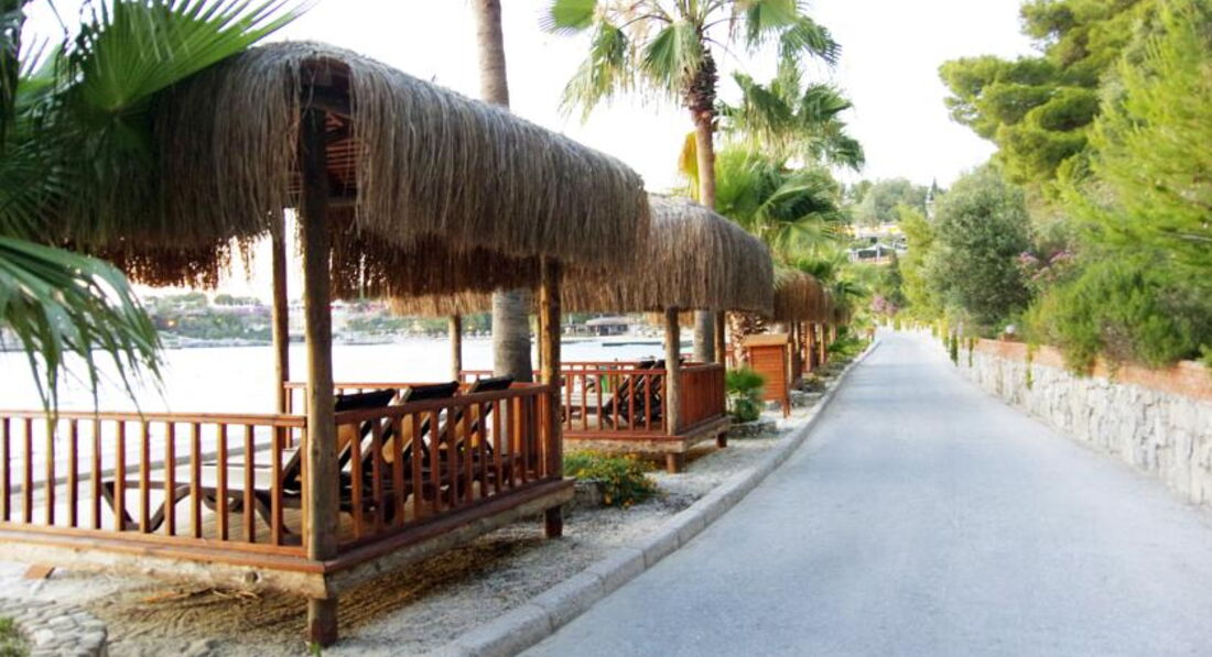 Всем Добрый день!!!впервые пишу отзыв, очень хотелось поделиться своими эмоциями об этом отеле и кому то может помочь в выборе!!! Мы отдыхали семьей из 5человек ( трое деток: дочь 8 лет, сын 3 года и малышка 9 месяцев)- Покупали путёвку у туроператора Coral летели с Pegasus- самолёт конечно потрёпанный, но ничего) прилетели мы в Бодрум в районе 6 утра и в 8.00 были в отеле Нас радушно встретили и попросили пройти на завтрак! После завтрака мы вернулись и у нас взяли паспорта для оформления комнаты! Номер у нас был 306- подниматься в горку конечно надо, но скажем это не минус! Заселили нас где то около 10-10.30 как только мы позавтракали, мы не ждали ни минуты!!!! Все вещи наши увезли на маленькой открытой машинке, эти машинки курсируют по терриротории отеля постоянно!!! Весь отель на горе- поэтому мы везде с детьми и коляской бродили и даже радовались нашим пешим прогулкам!!! Все было на высшем уровне, компетентный персонал, готовый решать все наши вопросы. Да, они разговаривали в основном на английском- но никогда не было никаких проблем!!! Пусть на плохом своём английском, но объяснялись и нам всегда и во всем старались помочь!!!!Очень понравилось обслуживание в ресторанах, спасибо огромное всем ребятам официантам и администраторам. Посещали сауну хамам, массаж- все на достойном уровне!!! Ну а теперь о красоте нашей территории!!! Территория отеля просто огромнейшая!!!! Как вы знаете переводится название нашего отеля- Сосновая бухта!