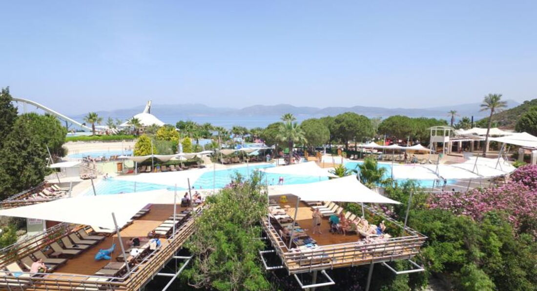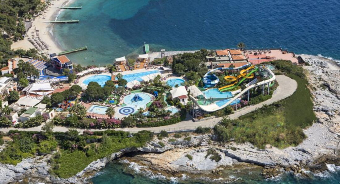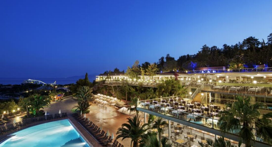мы молодая пара,по 25 лет. Буду конкретна. Я не понимаю почему на этот отель такая большая цена!!! За эти же деньги мы могли поехать с мужем в отель Адам и Ева(Белек), Онурия Кларос (Кушадасы), Аква фэнтэзи (кушадасы)-шикарнейшие новые отели, с великолепным питанием, качественным спиртным и общим уровнем. Цена этого отеля объективно говоря- 1000 у.е на двоих на 10 дней. Отмечу два огромных плюса-это безупречно чистый воздух и прозрачная вода! Но ради этого можно было взять 3 звезды без все вклюнено! А в остальном отель,простите -ПОЛНАЯ ДЫРА! Я была в Турции 4 раза-и всегда в 5*! Мне есть с чем сравнивать ,поверьте! Еда несвежая, в столовой(рестораном я это не могу назвать) постоянно пахло ,простите, какой-то блевотиной, фруктов кроме арбуза и зеленой дыни-нету, только 1 раз виноград был за 10 дней ,и то кислый, напитки-сплошная химия(но это в общем то везде), если хотите натуральный сок-платите 4 евро за стакан! У меня каждый день болел желудок, хоть и никогда не было никаких проблем раньше. Качество спиртного это вообще отдельная тема-только местный виски ,пиво и белое и красное вино(красное-сплошной краситель). И все это только до 24.00! А после за ЭТОТ же МЕСТНЫЙ виски (не джек, не ред) нужно платить 17 евро за 50 грамм! А стакан колы 4 евро! Мы в основном пили свой виски,который купили в дютике-но с таким нас не пускали на дискотеку! мы сидели рядом на лежаках и просто наблюдали за танцующими бельгийцами! Русских было от силы 6 человек. Остальных 50%турки и 50%бельгийцы. Отношение к русским очень брезгливое и недоброжелательное и поверьте это чувствуется во многом. Лежаки на пляже старые и неудобные, более того, их в три раза меньше,ЧЕМ ОТДЫХАЮЩИХ-занять место проблематично, если конечно вы не встаете в 7 утра. бар на пляже во время ланча весь забит,очередь огромные за едой всегда. Берег усыпан камнями.Ходить больно. Мы прыгали с пирса. Горки хорошие и интересные-с этим не поспоришь, и за безопасностью следят хорошо. Территория ПРОСТО ГРОМАДНАЯ !!!!Горы,склоны и ступеньки всюду, все наши знакомые там хоть раз,да упали, и я тоже, достаточно сильно. И ходить придется очень много. Мы шли от своего бунгало до пляжа минут 15! хотя у нас пятая линия бунгало, а всего 10. Номера в бунгало допотопные, и уборка никакая, но про это я уже вообще молчу. Там ездят маленькие машинки, но они походу возят только бельгийцев и турков. Мы очень уставали ходить, не представляю каково пожилым и детям. Детей в отеле нереально много! Да и вообще людей. Постоянное ощущение тесноты! Походы в рестораны -это вообще было издевательство-две оливки-два ломтика лимона и лазанья размером для воробья-вот тебе и весь итальянский ужин! Только в рыбном было хорошо.Сервис очень плохой,мебель старая, да что тут говорить-отель 1993 года!В общем за такие деньги я бы не советовала туда ехать никому-ни семьям, ни ТЕМ БОЛЕЕ молодежи!