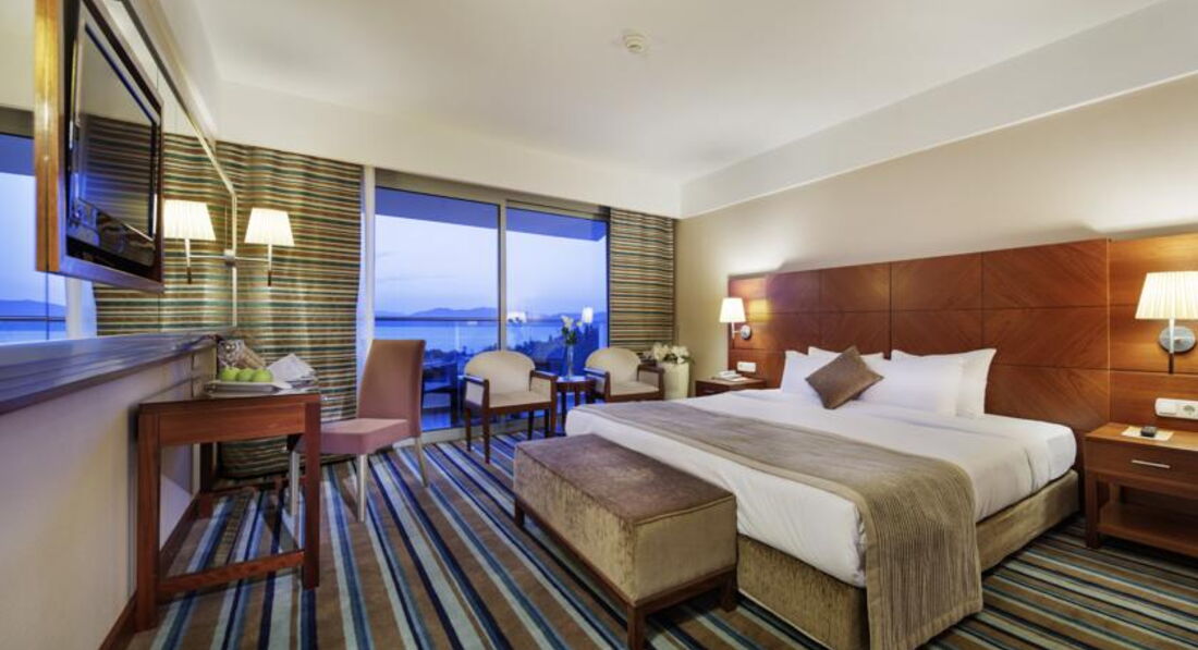 Отдыхали семьёй в этом отеле первые две недели сентября.По порядку:дорога от аэропорта Измир заняла не более часа,что безусловно является плюсом.