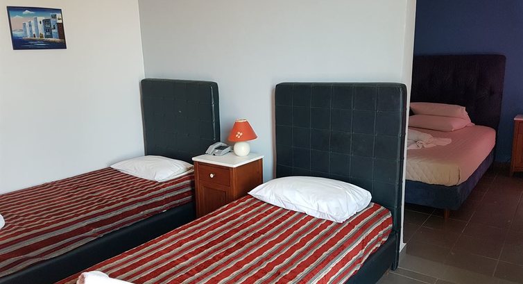 Типи номерів: standard room (осн. ліжко - 2 односпальні або двоспальне, дод. - Розкладне, макс. 3 чол., 21 м2). standard room SV (вид на море, осн. ліжко - 2 односпальні або двоспальне, дод. - Розкладне, макс. 3 чол., 21 м2). family room (спальня та вітальня без дверей, осн. ліжко – 2 односпальні або двоспальне, дод. – 2 односпальні, макс. 4 чол., 42 м2).У номері: зміна білизни: 3 рази на тиждень кондиціонер: індивідуальний безкоштовно зміна рушників: 3 рази на тиждень прибирання номера: 3 рази на тиждень підлога: керамічна плитка балкон або тераса фен: за запитом Інтернет: Wi-Fi, безкоштовно ванна або душ міні холодильник телевізор: є