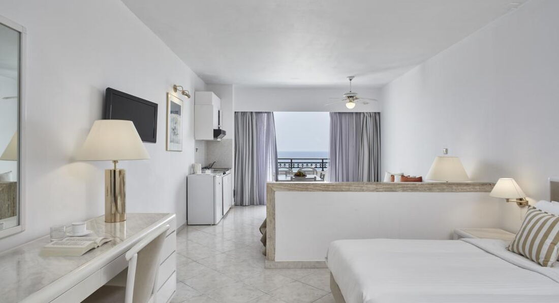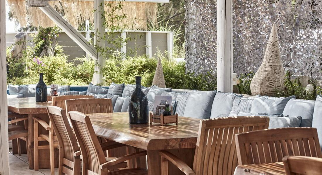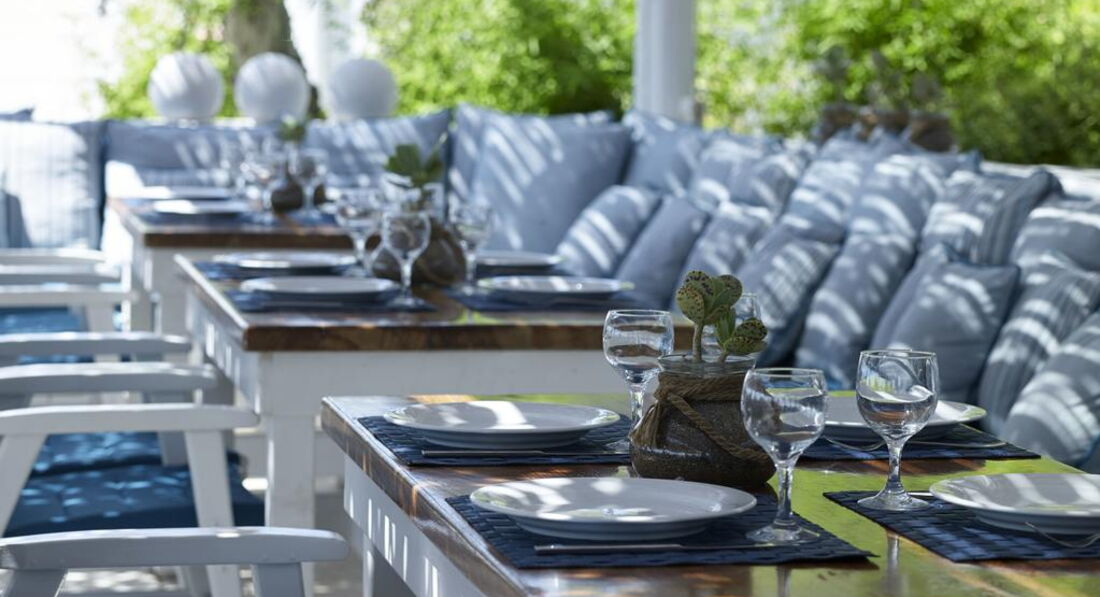 • традиційна грецька таверна пропонує відвідувачам страви грецької та міжнародної кухонь; • бар біля басейну пропонує прохолодні напої, коктейлі