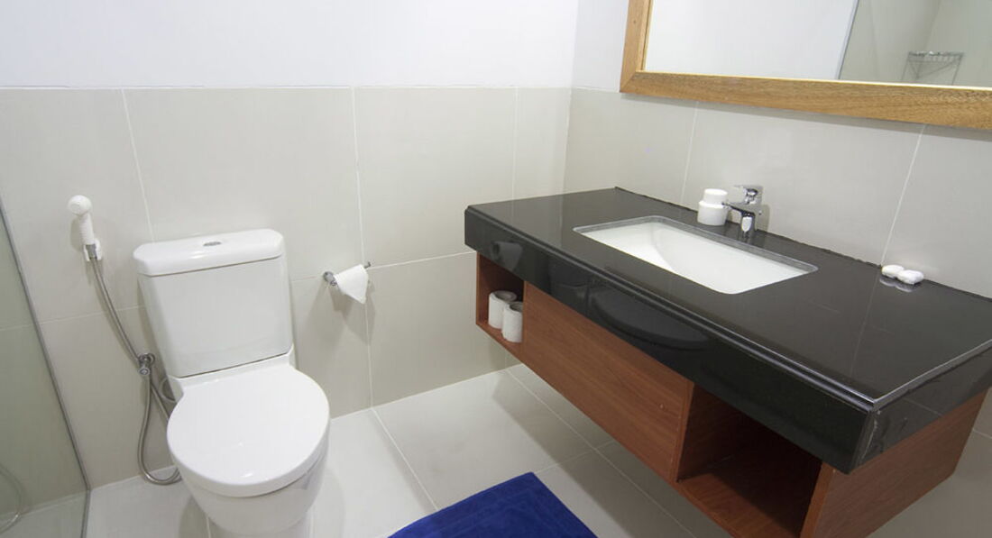 Получили совсем галимые номера - реально это бывшие бараки британских ВВС в годы, когда мальдивы были под имперским гнетом некогда великой британской империи. Возможно, вы спросите, а при чем тут ВВС, если дело на мальдивах? Да, там аэропорт в 5 минутах езды на велике. Он правда не мешал, самолетов почти не слышали, но зато в море была пристань, куда небольшие баржи привозили керосин и сливали в цистерны в аэропорту - видимо горючка для местных авиалиний, на которых, к слову, местные активно летают. Справедливости ради отмечу, что баржа с керосином приплывала на наших глазах 1 раз за две недели, и ни капли керосина в воду не упало и даже запаха не было - мы там как раз рядом купались, за территорией отеля. Так вот вернусь к номерам - душ, минибар, кровати, зеркало и розетки были. Но вот на этом все закончилось. Кондиционер были еще и вентилятор. Телека не было, но это волновало меньше всего. Номера спртанские, без роскоши, мягко говоря. Твердая египетская 3+ или 4-, в зависимости от настроения оценщика.