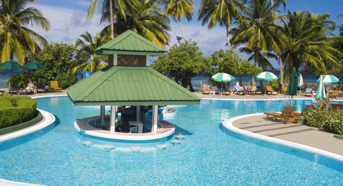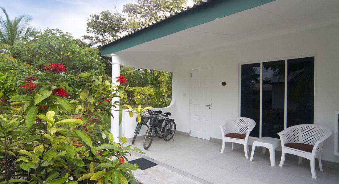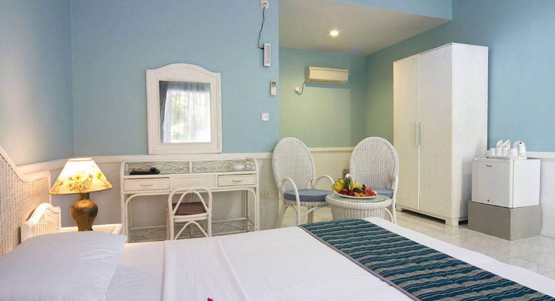 Отдыхали с мужем в этом отеле в феврале 2012 года. Путевку покупали за 3 дня до вылета, поэтому выбора особо не было... Взяли что было, правда немного переживали что это Трешка, но как оказалось зря! Перелет туда из международного аэропорта местными авиалиниями совсем не утомителен, не смотря на то что почти 1,5 часа. Все это время можно наблюдать прекрасный вид островов!!! Аэропорт находится на том же острове что и отель, поэтому до отеля ехать всего минут 10) Заселение сразу по приезду. Номер так сказать минималистический. Только самое необходимое(ни телефона, ни интернета, ни телевизора). Мебель старенькая, но все чисто и аккуратно. Стеночки в постройках очень тонкие, поэтому слышимость превосходная)) Питание: кормят очень неплохо для "трешки", без изысков, но всегда сыт. Очень радуют полдники со всякими пирожными. Бассейн один и к нашему удивлению пользуется огромной популярностью...лежаков всегда нехватает. Но так как мы приехали ради моря, то отдыхали у моря, где лежаков предостаточно! Море просто сказочное! Обязательно берите фотоаппарат для подводной съемки, там действительно есть что запечатлить! Вечера проходят скучно(( Никакой анимации там не предусмотрено, поэтому каждый развлекает себя как может. Полнейший релакс!!! Велосипеды бесплатные в отеле, мы отлично покатались! В отеле оочень мало наших соотечественников, что предают особую атмосферу релакса)