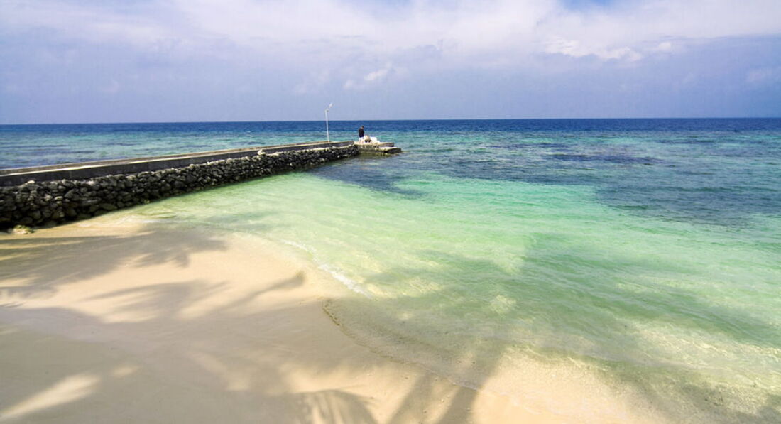 Фотки не нашел с той поездки, но в гугле масса фоток. Я взял три с гугла. Это правдивые фотки. На фотке с общим планом видно, что зона пляжа небольшая и много рифов, которые в отлив оголяются и торчат из воды, что мешает купаться. Водоросли видно тоже невооруженным взглядом. Длинный пирс - это как раз туда швартовался бензовоз для заправки баков в аэропорту. Если смотреть на картинку общего вида, то слева от длинного пирса будет как раз приятный пляж, где мальдивы настоящие. Еще апдейт: посмотрел внимательнее, нет, этот пирс, куда приплывали яхты для экскурсий. На этой фотке не видно пирса для бензовозов, он дальше левее. Приятный пляж тоже сильно левее. Я так помню, что пешком минут 10 идти надо было. И еще один апдейт: глубина до линии темно-синей воды в прилив метра полтора, а отлив еще меньше. Сразу за линией, где кончается риф, уже реально глубоко, вода прохладнее. Туда не плавали, страшились акул, которые там в избытке водятся, хотя нападений на людей за последние 50 лет не фиксирвоали, кажется. Но кто их там знает, как они фиксируют. Если целиком съесть, то не понятно, акула это или нет. Ну это ирония.