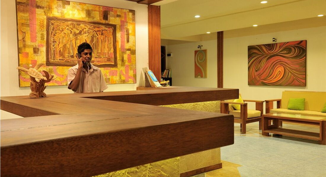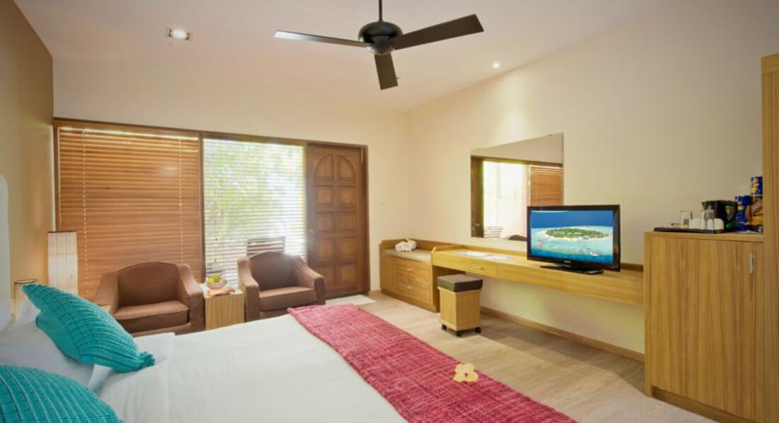 Отдыхала одна в ноябре 2013 года. Первый сюрприз вместо стандарта получила супериор в самом лучшем месте пляжа, номер 134. Номер вполне функционален, не хватало чайника, феном не пользовалась, а в открытом душе романтично валялись цветы с деревьев. Замечу, что нет номеров с раздельными кроватями, что не совсем удобно для не семейных пар. Еда на мой вкус замечательна на ужинах, вкусные супчики и салаты, рыба, на завтрак его величество омлет. Фруктов немного, вкусная выпечка. Но я ехала не за этим, море, вот что здесь главное. Много живности скаты, акулы, черепахи, мурены, дельфины, одной девушке повезло, она видела мант. Разумно сделаны проруби в кораллах, обозначены буйками, есть где просто побарахтаться в воде, в принципе обувь для воды можно не брать, а вот маску и трубку обязательно. Обувь вообще можно не брать , все ходят босиком no news, no shues. Телик не включала, вечером после ужина ходили на кормление акул, гоняли крабиков по берегу. Wi-fi на ресепшен не ахти, но вполне можно можно пообщаться. Было не скучно. Мне понравилось. Очень помогли девочки из Мальдивианы с обратным трансфером, большое спасибо Ксении.