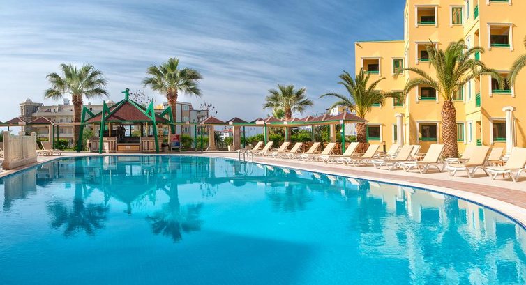 Територія та послуги: • басейни: 2 (відкриті) • водні гірки: 3 • біля басейну парасольки, шезлонги, матраци: безкоштовно • бари: 2 • ресторани: 1 (основний) • інтернет-кафе платно • перукарня • Wi-Fi безкоштовно (на території готелю) • Кабінет лікаря • магазини Розваги та спорт: • анімація • сауна • масаж платно • турецька лазня (хаммам) • тренажерний зал • волейбол на пляжі • дартс • настільний теніс платно • міні-футбол • тенісний корт (з твердим покриттям) Для дітей: • дитячий майданчик • дитячий басейн із гірками • дитячий клуб (міні-клуб 4-12 років) Живлення: • все включено Пляж: Міський піщаний пляж за 350 м від готелю.