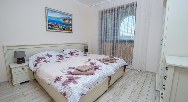 • Two bedroom apartment (100 кв.м.) – 2 спальні, вітальня, ванна кімната, кухня (плита, мікрохвильова піч, холодильник, чайник, пральна машина), балкон
