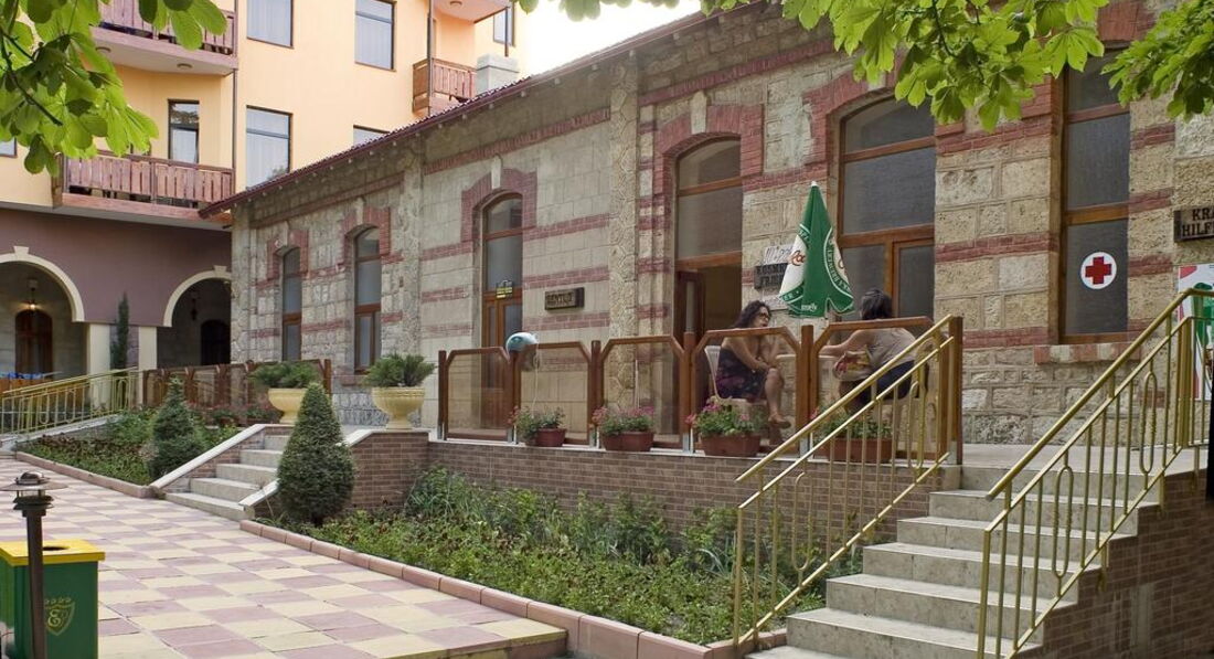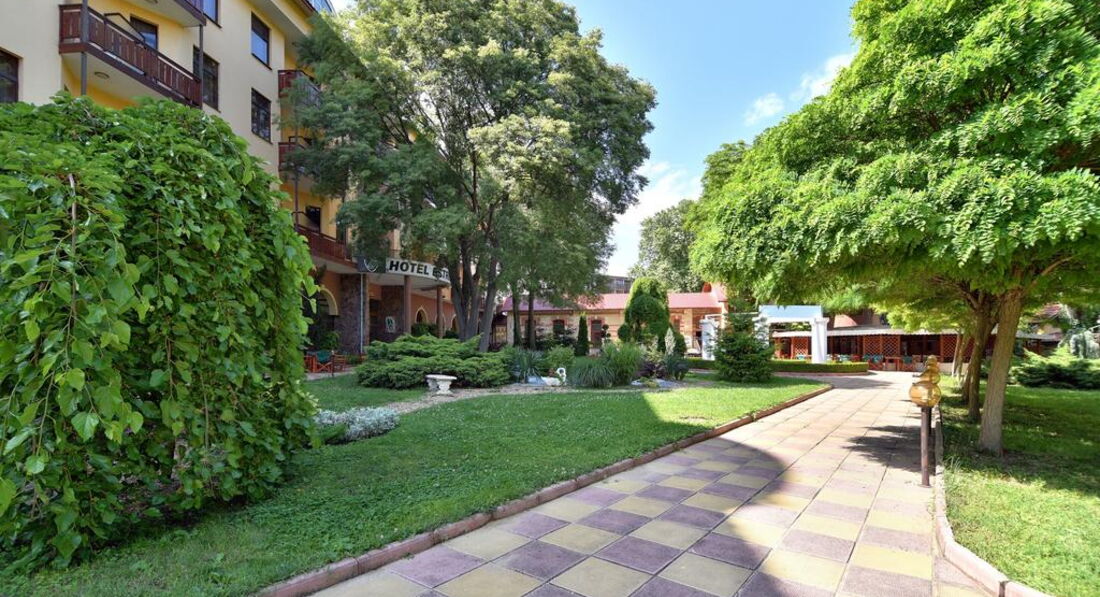 Загальна територія із Estreya Residence 4*. Готель розташований біля старовинного невеликого монастиря, навколо багато зелені. Мінеральна вода з джерел курорту, що використовується в готелі, допомагає при лікуванні серцево-судинних захворювань, добре діє при захворюваннях ендокринної системи (діабет, надмірна вага, подагра та інших), захворюваннях опорно-рухового апарату та функціональної нервової системи. Підходить для спокійного відпочинку із дітьми.