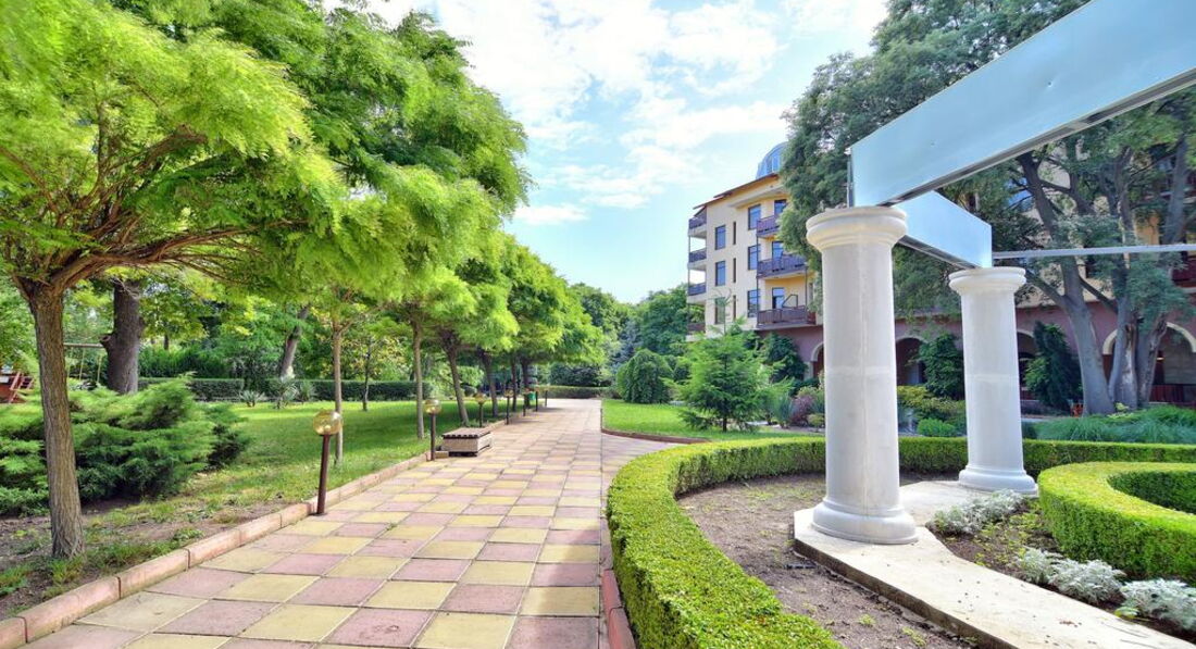 Ну плюсы в отеле все же есть: красивый, зелёный двор. Рядом храм. Не шумно вообще на всей территории Св Константин и Елена. Вечером есть где развлечь ребёнка, как я называю "деньгивымогательство" детям хочется все и сразу. Есть несколько кафешек где можно поесть. Особо разгуляться не где. Один раз ездили в Золотые пески, там "движение" вечером очень сильно. Много кафе, разные аттракционы, музыка громкая и т д. Ну это кому как нравится. Так как мы с детьми маленькими, нам больше нравилась тишина.