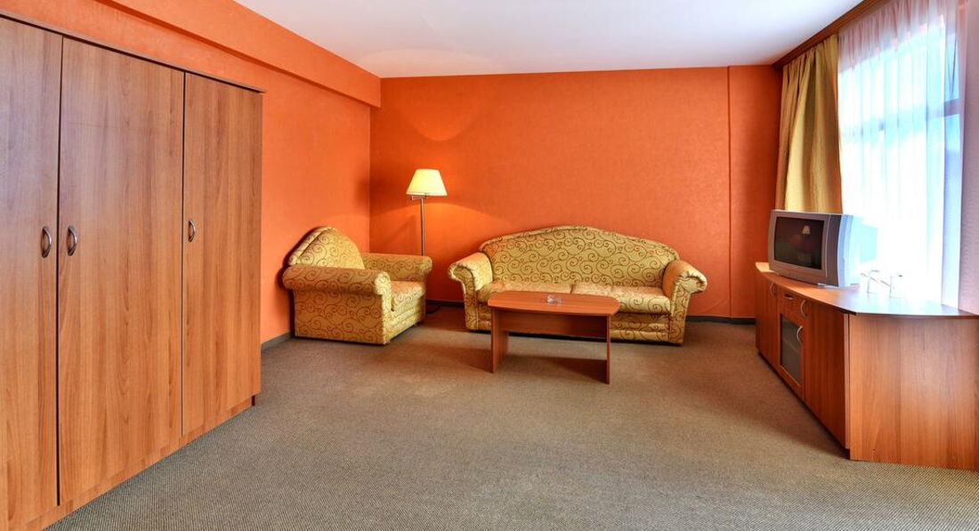 Приятный отель, по номерам, сервису, питанию соответствует категории 4*+, есть бальнеоцентр и бассейн с минеральной водой. Подойдет для спокойного отдыха. На территории отеля расположена церковь св. Константина и Елены.