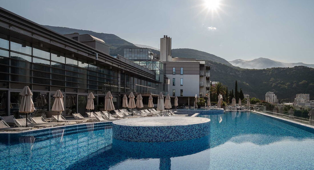 Wellness-центр площею 1 500 кв.м: турецька лазня, сауни, тропічний душ, тренажерний зал. 2 відкриті басейни. Ресторан та 2 бари з середземноморською та міжнародною кухнею. Пляж Бечічи — 350 м від готелю. Пакет All Inclusive доступний. Телефон: +382 33 662 662.