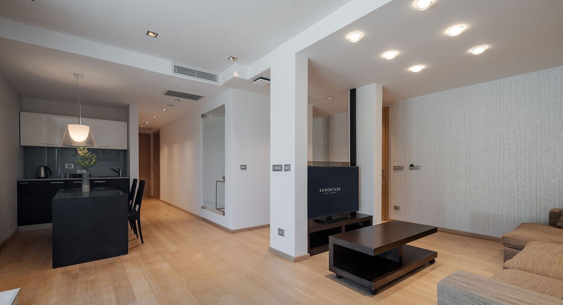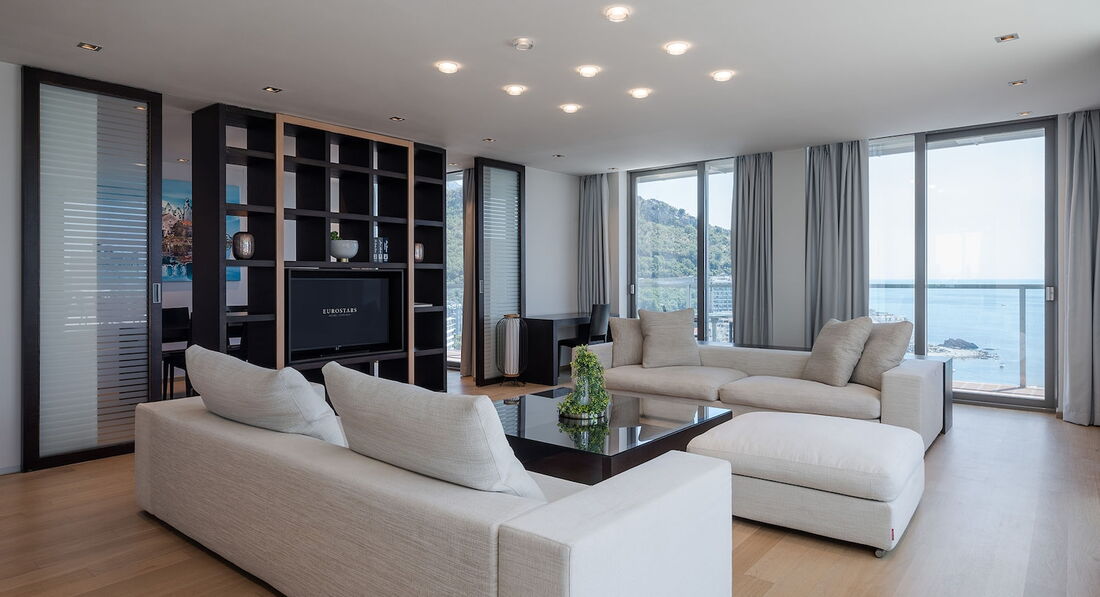 Junior Suite (45 кв.м, макс. 2+1 чол., вітальня, панорамний вид).