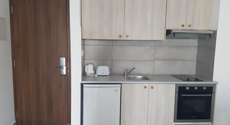 32 Studio |(28 кв. м, макс. 3 особи) складаються з однієї кімнати з виділеною областю кухні, в номері два односпальні ліжка|