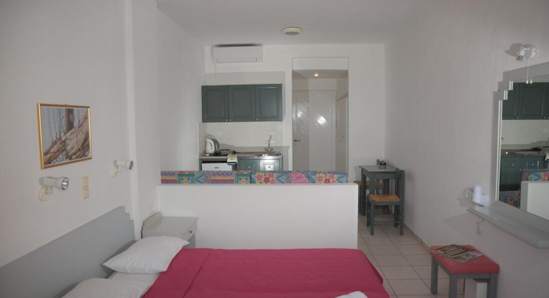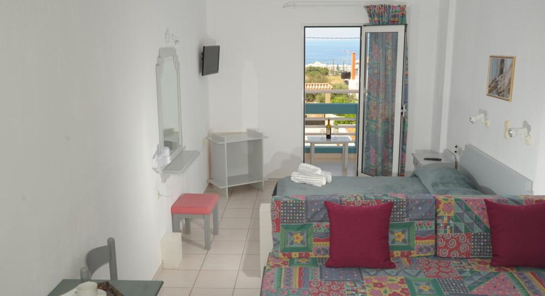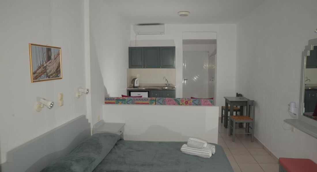 Типи номерів: Apartment Sea View (30 м2, вид на море, однокімнатний номер з обладнаною кухнею, є балкон)У номері: • душ • фен (за запитом) • кондиціонер (платно) • супутникове ТВ • телефон • електрочайник • чай, кава, цукор • wi-fi (безкоштовно) • сейф (платно)