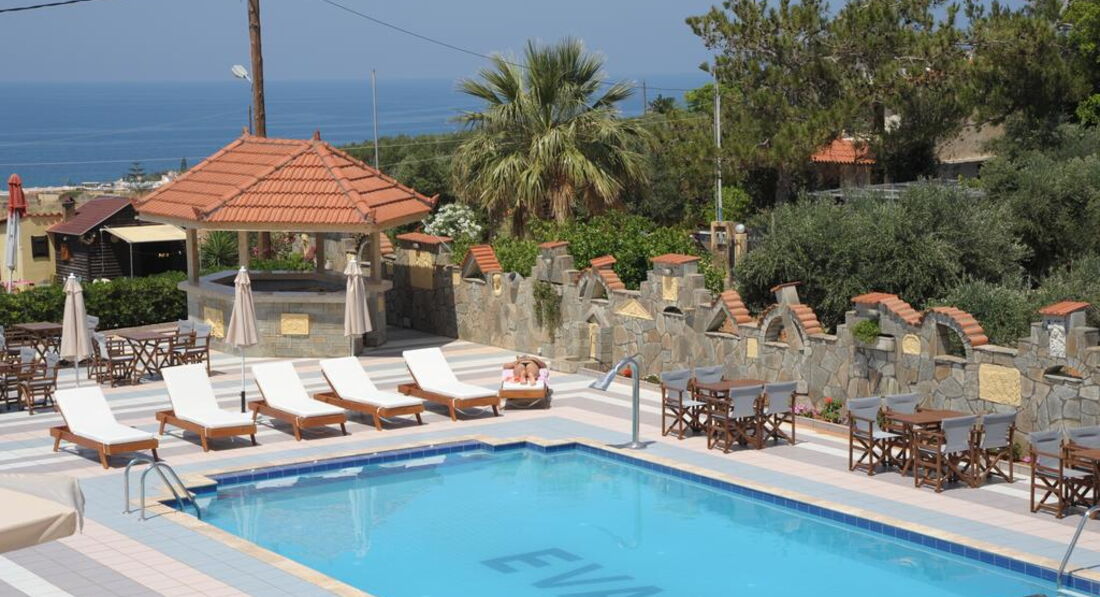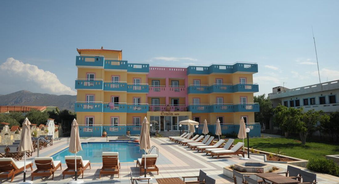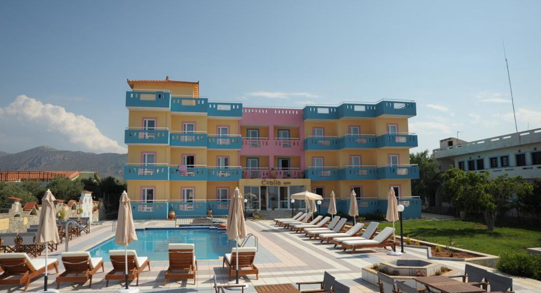 Комплекс Evalia розташований у районі Аннассарас. Складається з одного основного 3-поверхового корпусу. Збудований у 1995 р. Номерний фонд готелю налічує 38 номерів.