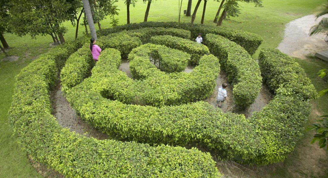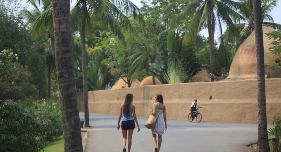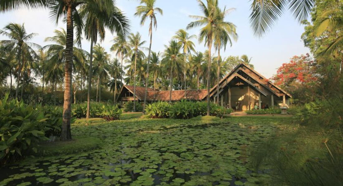 Готель складається з двоповерхових будівель в оточенні садів та ставків.