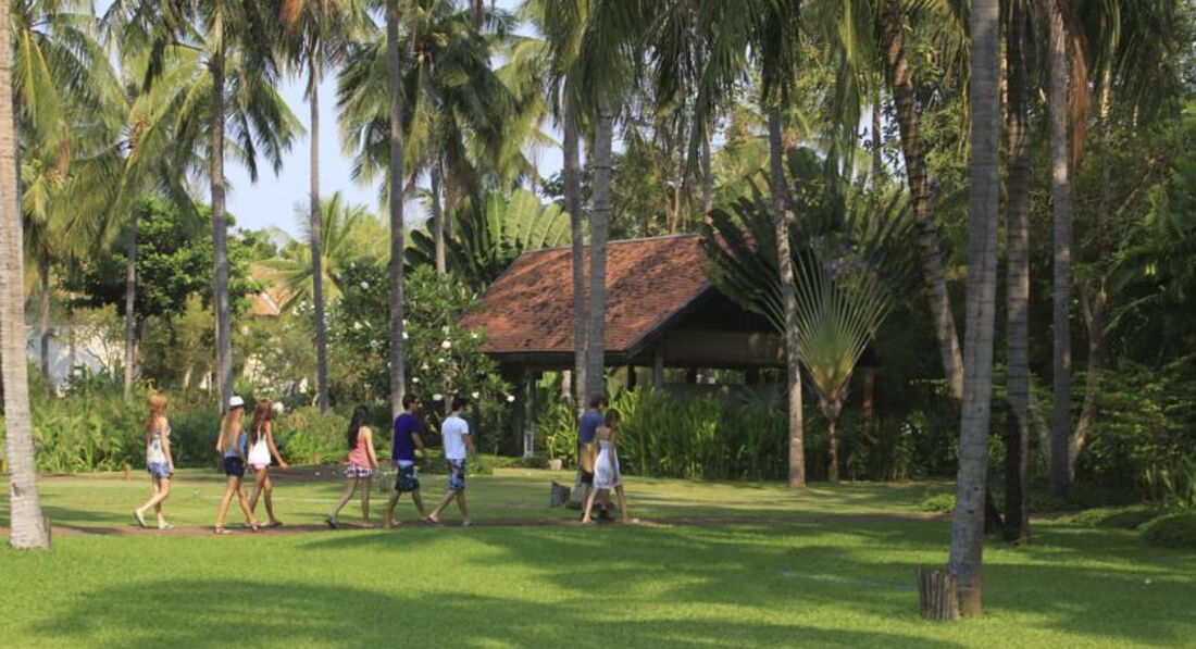 Из положительных моментов: есть детская площадка и специальный детский клуб (хотя дети должны во время занятий быть под присмотром родителей) , функционируют всякие спортивные мероприятия (волейбол, теннисные корты, гимнастика тай-чи) и два СПА-салона, на завтрак ежедневно готовят свежевыжатые соки (даже томатный!), всякие грибы и овощи выращивают на отельном огородике - забавно. Персонал очень внимательный и любезный, несколько раз в день на пляж притаскивают очищенные арбузы, дыни или ананасы и предлагают гостям отеля.
