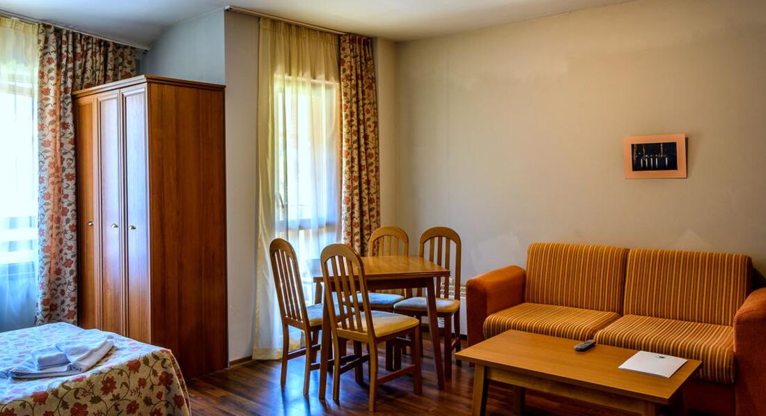 Типи номерів: Studio (одне приміщення з двоспальним ліжком або двома односпальними ліжками, розкладний диван, обладнаний кухонний куточок (обідній стіл, холодильник, плита, електрочайник, посуд, столові прилади), макс. 3 чол., 50 м2); One Bedroom Apartment (спальня з двоспальним ліжком або двома односпальними ліжками, суміжні двері, вітальня з розкладним диваном та обладнаним кухонним куточком (обідній стіл, холодильник, плита, електрочайник, посуд, столові прилади), макс. 4 чол., 60 м2); Two Bedroom Apartment (дві спальні з двоспальним ліжком або двома односпальними ліжками в кожному, суміжні двері, вітальня з розкладним диваном та обладнаним кухонним куточком (обідній стіл, холодильник, плита, електрочайник, посуд, столові прилади), макс. 6 чол., 7 м2)У номері: душ фен: є телефон підлога: ламінат балкон room service: платно прибирання номера: щоденно зміна білизни: через 2 дні зміна рушників: через 2 дні Інтернет: Wi-Fi, безкоштовно тапочки платно холодильник ТБ: кабельне опалення електричні радіатори