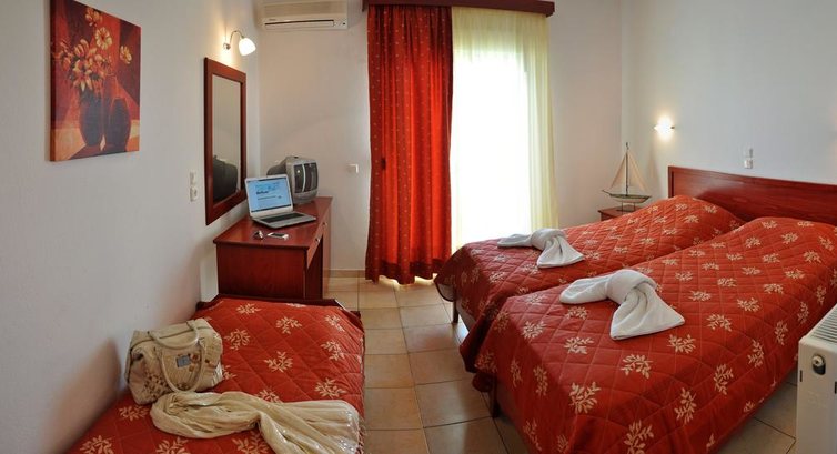 Територія та послуги: Бар, бар біля басейну Ресторан a la carte Автостоянка Інтернет: безкоштовний Wi-Fi у номерах та громадських місцях готелю. Сейф у деяких номерах (за запитом) безкоштовно. Телезал Трансфер - автобусна зупинка за 600 м від готелю Розваги та спорт: Басейн з прісною водою. Водні види спорту на пляжі. Шахи Анімація Грецький вечір з барбекю – 1 раз на тиждень. Для дітей: Дитячий майданчик - тільки гойдалка Дитячий басейн із прісною водою. Живлення: Сніданок. Пляж: Парасольки – за доплату. Лежаки – за доплату. Піщаний пляж 300 м. Доріжка до пляжу з соснами, спуск. Круті сходи до моря До сплати приймаються кредитні картки: Visa.