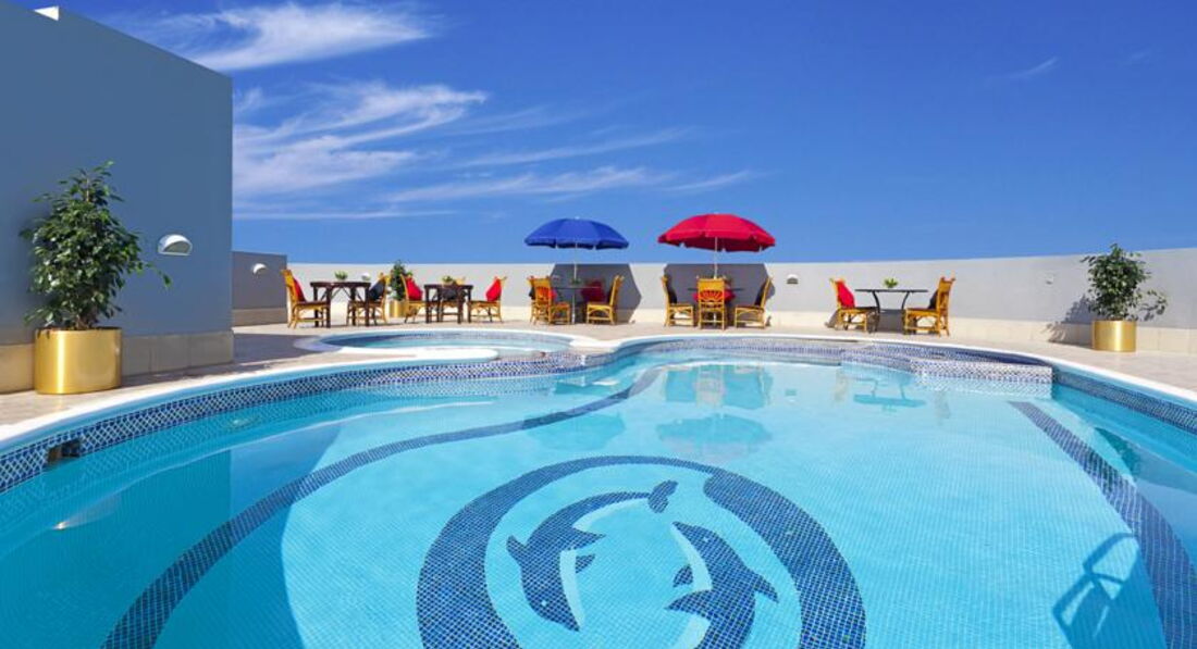 Отель хороший, новый,комнаты большие просторные с новой мебелью. Питание однообразное, но для завтрака пойдет. Расположен на окраине города в районе дейра недалеко от пляжа мамзар бич, до которого доехать на такси стоит 13 дерхам. Выйдя из отеля оживленности не увидите. Через каждую минуту над отелем пролетает самолет, так как отель расположен недалеко от аэропорта. Но шум не мешал. Персонал отеля не особо вежлив. Пытались всячески выморозить деньги за трансфер до пляжа, обьясняя тем что у нас он не оплачен.