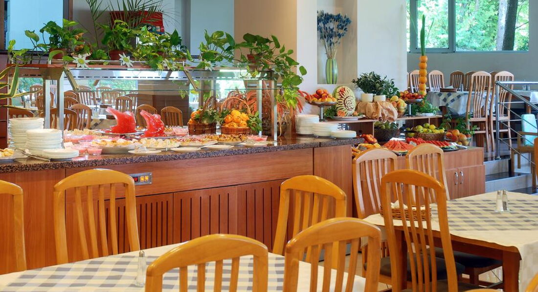 ПИТАНИЕ. У нас был олинклюзив. Завтраки, как в большинстве болгарских отелей: яйца во всех видах, хлопья, сыр, сосиски, гадкая колбаса, вкусный мед, булочки…Обеды, похожие на ужин, были иногда неплохи, иногда выбрать было нечего. Но всегда были разнообразные овощи и мяско, или курица. Из фруктов: арбуз к каждому приему пищи, дыня, персики, яблоки, сливы... Напитки соки ЮПИ, кола, спрайт, вино белое и красное из автомата, пиво(очень не вкусное),кофе, чай……..