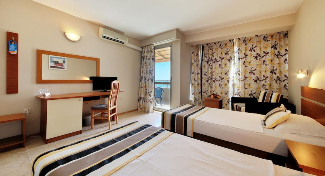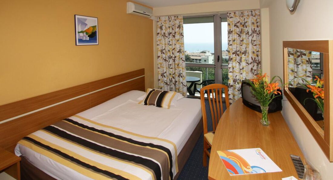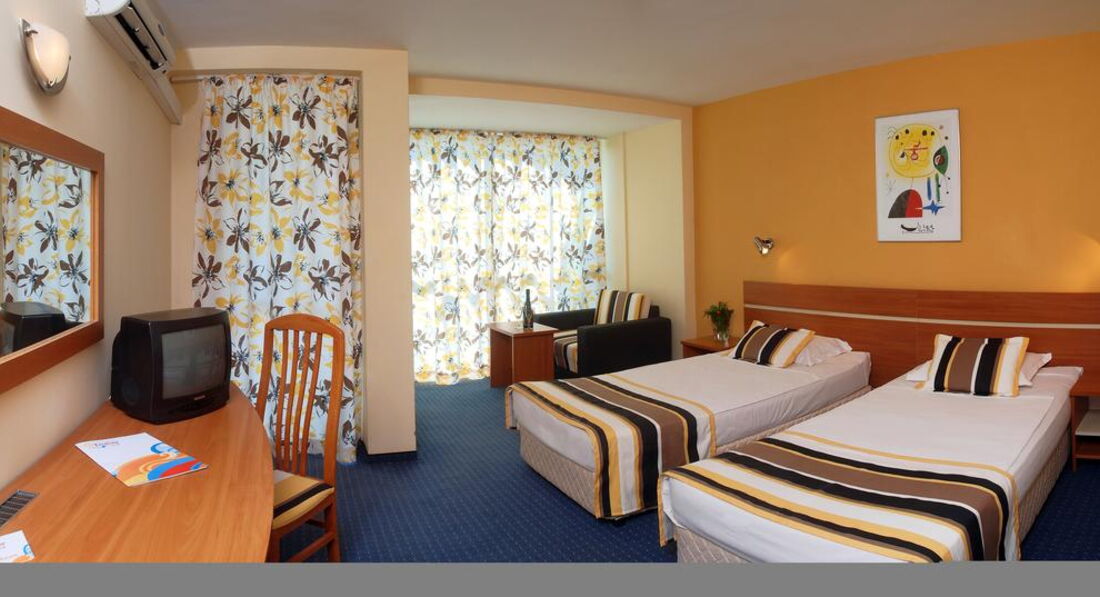 Начну свой рассказ с заселения. В этой "чудесной" стране заселение происходит после 14:00 и неважно будь ты с маленьким ребёнком или приехал в 6 утра будь добр ждать до 2-х часов дня после длительного перелёта! В целом номера нормальные, как и везде. Кормят хорошо(будьте аккуратны с водой у бассейна, сплошная хлорка, берите только в столовой или лобби -баре) Но анимация это полный провал, юмор на уровне ой упал, все ржут. Дискотека под деревенские болгарские треки 1 раз в неделю! Я никогда не была привередлива к отелям , но отсутствие территории и банального ограждения, это конечно непривычно, секьюрити это колобки за которых я честно говоря даже волновалась не случиться ли у них приступ при подъёме по ступенькам, а их в этом отеле предостаточно (даже в бассейне). В последний день перед выездом что полностью омрачило впечатлении об обслуживании что у нас не досчитали 1го одеяла упорно доказывая что их было 3 при нашем заезде, хотя мы специально из другого номера, так как у нас их было 2 , взяли одно . При выписке оказалось что в каждом номере должно быть по 3 одеяла, мы пошли на ресепшн мол какого к нам претензии от уборщицы, на что на ресепшне с улыбкой заявили что скорее всего вы оставили одеяло на пляже! За идиотов походу приняли совсем, не хотели отдавать паспорт угрожая если мы не прекратим разговаривать на повышенных тонах нам паспорт вообще не отдадут! Шок вообще. А если учитывать тот момент что в это же утро нас обокрали ( ночью или под утро украли телефон из номера, пока мы спали) то не кричать было уже просто невозможно. Так что советую выбрать другую страну для отдыха , население здесь очень своеобразное и отношение хамское, что в отеле что в магазинах , такси и прочих заведениях. Болгария как страна отдыха умерла для меня