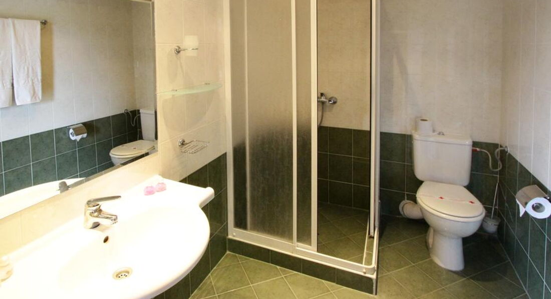 О номерах: номер стандартный: 2 кровати стоят вместе, кресло кровать, 2 тумбочки, стол, зеркало, стул, телевизор, санузел (душ, умывальник, унитаз). Все не новое, но чистое. На балконе стол и 2 стула, балкон очень маленький. Вид из наших номеров отеля был на горы, в принципе красивый. Наш номер был на северной стороне, поэтому жары мы не чувствовали. Мы каждое утро оставляли на постели чаевые 1 лев, у нас всегда было чистое белье и полотенца.