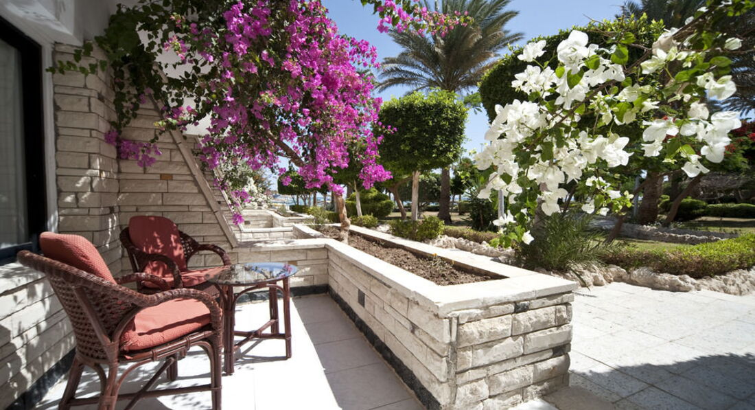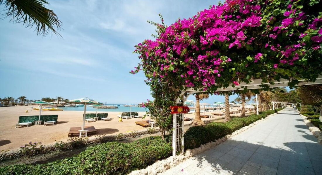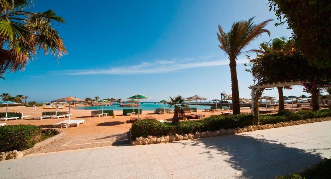 Ехала в Хургаду впервые - одна. После Европы, Тайланда и Турции по дороге к отелю сразу испугали отдаленность отеля от центра и "огней турзоны", мусор на улицах и стройка вокруг. Потом поняла что мусор и стройка это норма в Хургаде. Конечно 2 дня съеденных переносом рейса и ранним отлетом тоже прибавили грусти, но грустить в первый день были поводы поосновательнее))). Ночь прибыли в отель. Сразу предупрежу это конец октября - начало ноября 2015 года. В отеле идет ремонт. После дождя ремонтировали ресторан, посередине строят или обновляют группу корпусов, переделывают дорожки. Заселили в номер 403, на крючке, с облупившимися стенами и потолком, не идущим телевизором, желтой сантехникой, но самое главное - у входа валялась куча стройматериалов и пахло известью!!!. Пошла на ресепшен, пришлось доплатить по 5 $ за сутки чтобы меня поселили в 8 корпус. Просила ближе к морю но сказали что все занято а в более комфортных номерах типа стандарт (без доплаты) они размещают только семьи... Конечно это была "шутка"..... Так как во всех номерах которые я там видела 2 кровати (большая и маленькая) и номера достаточно просторные. Короче с 3 раза номер мне более - менее понравился, но не было цепочки на двери и пульта. Замки там межкомнатные, открываются любым ключом (поэтому наверное нужна цепочка) и поэтому в отеле есть бесплатный сейф на каждого клиента он находится в здании ресторана. В номере душ, конечно вода выливается в сторону прямо на сантехнику, стоящую рядом и на полу в ванной вода... Раковина, фен. Меня удивило что в спец емкость у раковины наливают только жидкое мыло нет ни геля, ни шампуня фирменных в отеле. Пришлось покупать. Цепочку просила сделать 3 дня. Только благодаря администратору Ирине - она моя землячка все проблемы удалось решить. Очень приятная девушка и грамотно все объясняла что и как нужно здесь делать и куда и зачем можно сходить и где погулять. Утром порадовал хороший шведский стол ЗАВТРАК с оладушками, йогуртом, яишницей с разными наполнителями и прочее... только кофе был растворимый.. Но потом в отремонтированном здании ресторана стояла кофе машина и все было окей!!. Территория отеля шикарная 4 пляжа, 2 бассейна - плавай, загорай .. можно потеряться или сгруппироваться на ваш вкус... У пляжей коктейли, закуски, мороженка после обеда.. Короче с едой там все хорошо. Ужин обязательно мясо или рыба или то и другое на гриле. Супчики с гренками отличные, фрукты.. многие поправились.. благодаря хорошему рациону.. и аппетитному оформлению блюд. Но... сразу бросилось в глаза как обслуживают нашего брата.. публика русская была очень приличная, без скандалов, стадности и хамства и КАК ОБСЛУЖИВАЮТ ИНОСТРАНЦЕВ!!!! Иностранцам приносят все на подносах, напитки в стеклянной посуде. Русским конечно в пластмассовой. Но потом понимаешь, что если ПОПРОСИШЬ в стекло.. нальют в стекло... Отдельно про отельных гидов Не помню как звали нашего А... от Анекс -тура он прям был описан в отзывах точно ... Если не покупаешь у него экскурсию то сразу презрение и не желание консультировать не по каким вопросам. И потом была Юлия... та даже лицо в наше сторону не поворачивала когда отвечала на вопросы... Про нее также в отзывах есть много точных определений. Хорошая анимация, из за большой территории отеля ее не всем было видно. Но я ходила на зарядку с элементами йоги и аквааэробику, был еще 