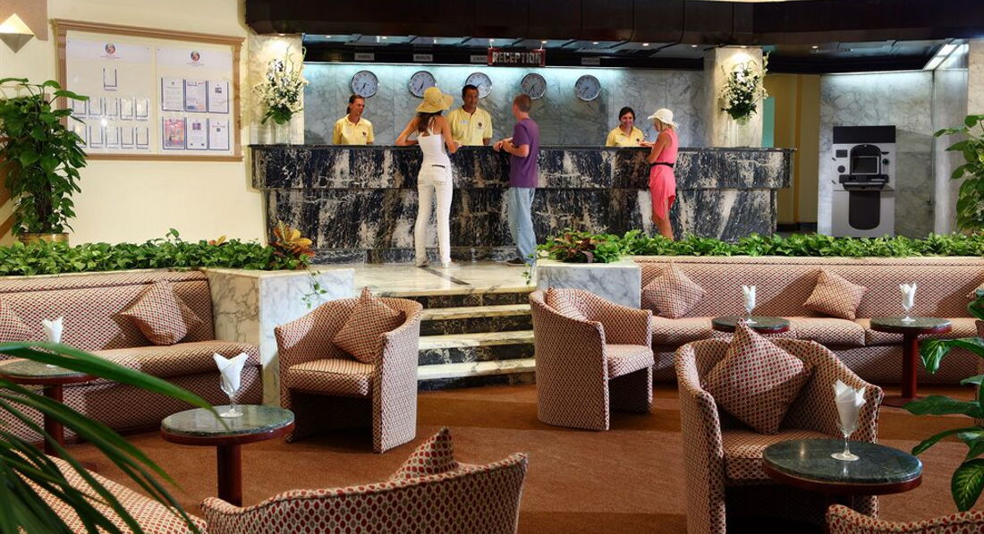Со мной вместе в отель прибыли довольно таки много народу с нашего самолета. На реcепшене заполнила карточку дала паспорт с вложенными 10 долларами, сказали подождать. Через минут 15 подошла повторно. Предложили 1 корпус с улыбкой и обещанием отличного номера. Отказалась сразу, попросила номер в трехэтажных корпусах, и не на первом этаже, после нескольких минут вежливых улыбок и настойчивых просьб дали номер в 8 корпусе на 3 этаже. Номер большой и светлый, не работал телефон. Не заморачивалась, он мне был не важен. Все остальное работало, претензий нет. Раза три вырубался кондиционер, после визита на реcепшн его чинили в течении 5 минут, иногда мастер ждал под дверью, я еще не успела вернуться))) С персоналом никогда и нигде не было проблем, все здоровались, улыбались, были любезны и доброжелательны.