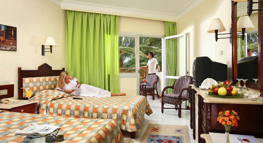 Номер был с видом на басейн и море на третьем этаже с кондицыонером. Утром возле моря всегда с аниматором делали зарядку, танцевали и занимались аквааеробикой! Персонал вежливый и приветливый. Територия отеля ухоженная и красивая. Покупали екскурсии у гида и были довольны качеством. Плавали яхтой на райсский остров, там белый песок и небесно-голубая вода. Ездили по пустыне на джипах, катались на верблюдах. Были в городе на дискатеке на пенной вечеринке.