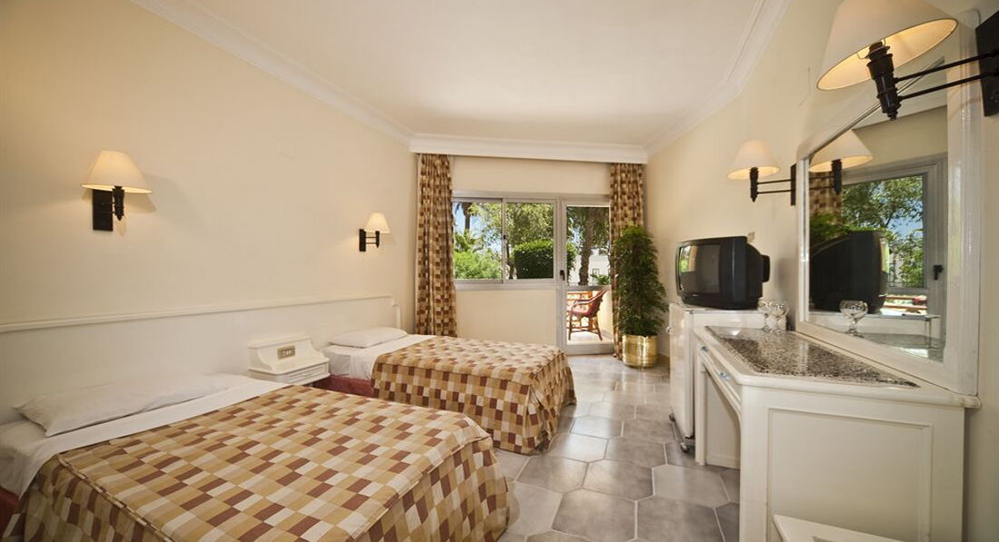 Хороший отель для бюджетного отдыха. Территория отеля большая, ухоженная. Длинная береговая линия пляжа. Отдыхающих было много, места на пляже всем хватало. Нет анимации. Сразу из отеля выход в город.Питание нормальное, соответствует количеству звезд отеля. Номер был со старым ремонтом. Предлаают за деньги переселиться в другой.