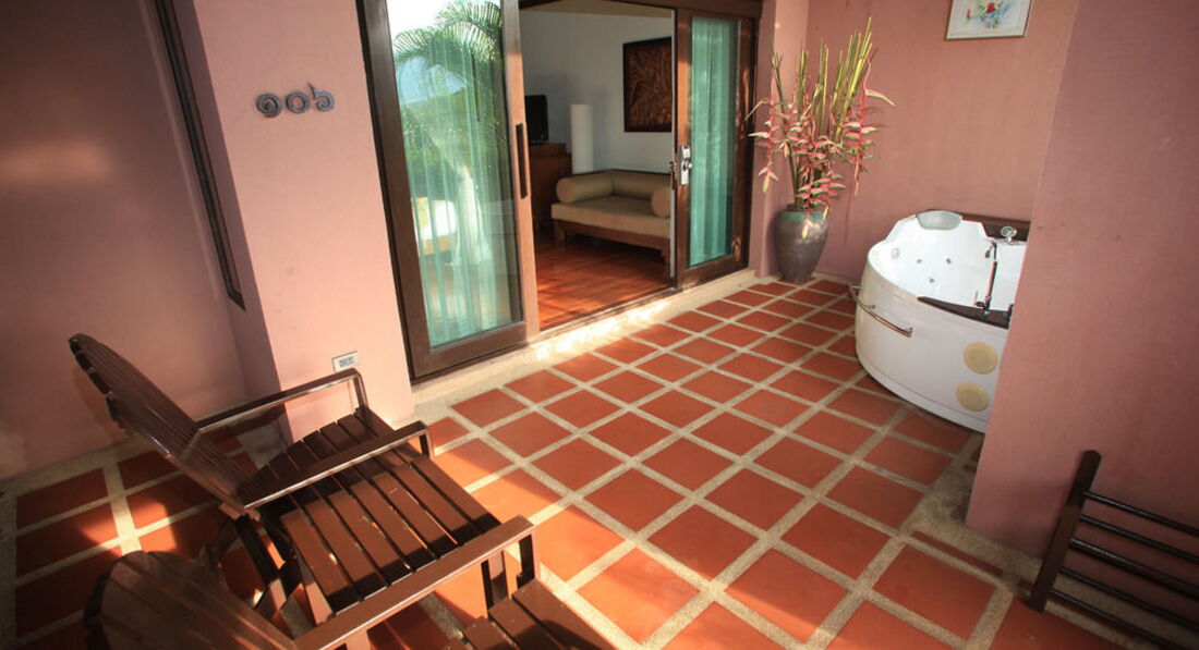 6 Deluxe Balcony (вид на сад, спальня з вітальнею, тільки два односпальні ліжка, макс. 2+1 чол., заг. пл. ділянки вілли 61 м2);