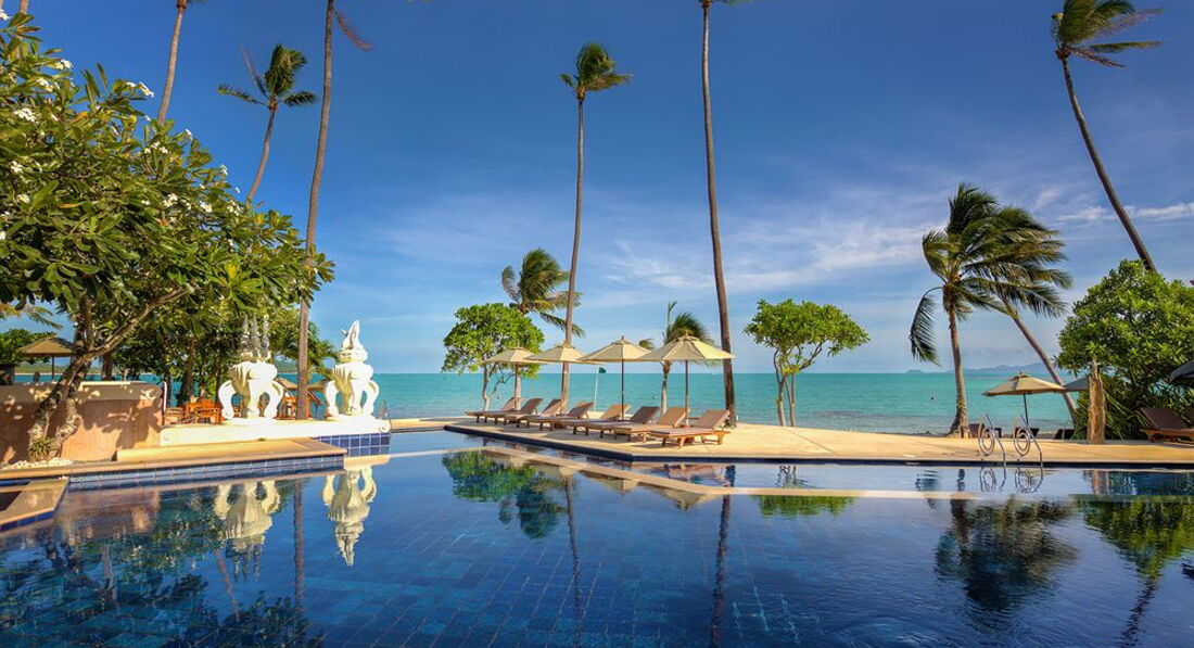 Расположен на пляже MAE NAM BEACH, в тихом уединённом месте, среди тропической зелени и кокосовых пальм. Представляет собой комплекс традиционных тайских вилл на берегу Сиамского залива.