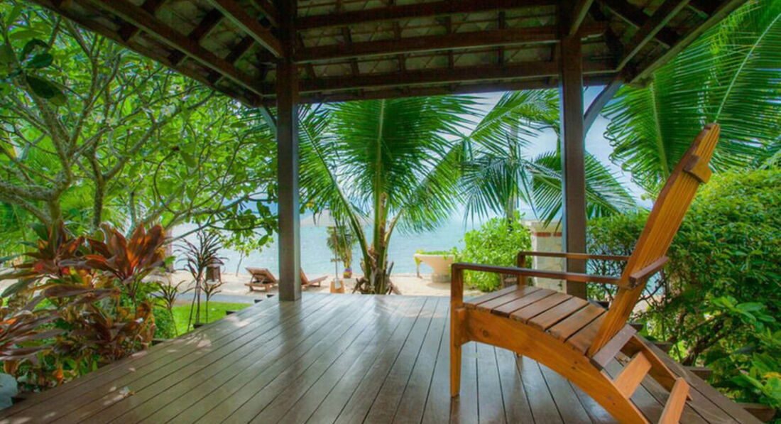 5 Beach Front Villa (вид на море, спальня з дверима, вітальня з обідньою зоною, лише двоспальні ліжка, альтанка в саду, макс. 2+1 чол., заг. пл. ділянки вілли 115 м2).