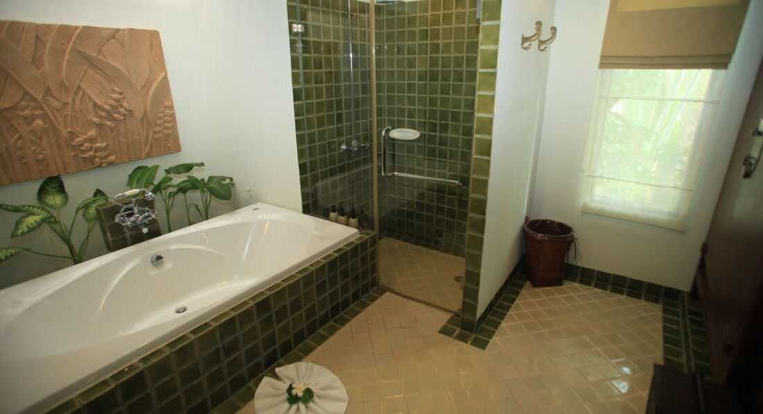 Отель напоминает небольшую таинственную деревушку состоящую из бунгало, которые расположены в кокосовой роще, очень много зелени, поют птички, никаких насекомых не было. Есть бунгало которые находятся прямо у моря там же и находятся отдельные вилы, а есть бунгало которые находятся на возвышенности как раз там у нас и был номер, преимущество такого номера очень красивый вид на море и горы, можно лежать прямо в джакузи и любоваться пейзажем. В каждом бунгало 2 этажа, у нас был первый, но на втором этаже должно быть еще круче. Номер довольно большой, и просто огромный туалет с ванной, душем. Был интернет прямо в номере.
