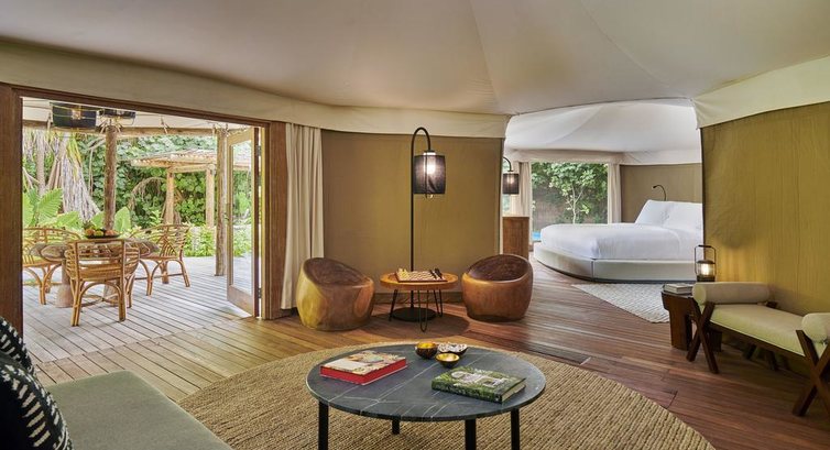• LUXURY TENTED VILLA Душ на вулиці, двоспальне ліжко, дитяча спальня, сад, басейн, тераса для відпочинку. Макс. розм. 2+2/3 чол.