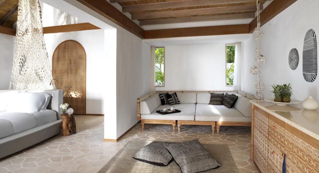 • DELUXE BEACH SUNSET VILLA площа: 520 кв. Ванна кімната відкритого типу та звичайна, басейн, двоспальне ліжко. Макс. розм. 2+2/3 чол.