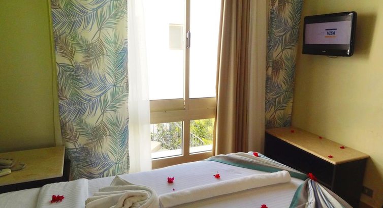 Ездили с подругой с 27.12.12 по 4.01.13.Приехали заплатили 20 баксов за двоих за номер (по просьбе менеджера),нмер оказался ничуть не лучше,чем у людей которые за это не платили. Так что платить по видимому не стоит. Перед покупкой путевок мы прочитали все отзывы про этот отель и выбрали его сами,мы были готовы ко всему: отсутствие фена,грязным полотенцам и грязному постельному белью,к тараканам в номере,к грязи на территории.Но в первый день мы нашли таракана в собственной тарелке с едой(в макаронах)-были в шоке,но решили никому ничего не говорить,дабы никому не портить отдых,в том числе и себе.На следующий день не рискнули брать макароны,но в этот раз таракан попался в картошке.Для нас готовых ко всему это был просто ШОК.После чего мы пошли на ресепшен разбираться,на что менеджер сказал что нужно было сфотографировать или показать,а так мы все придумали...что самое интересное гид,от туи,который должен учитывать наши интересы был на стороне менеджера и тоже предложил сфотографировать таракана.(К сожалению так быстро бежали из столовой что даже не подумали об этом).С тех пор в отеле мы больше не кушали.