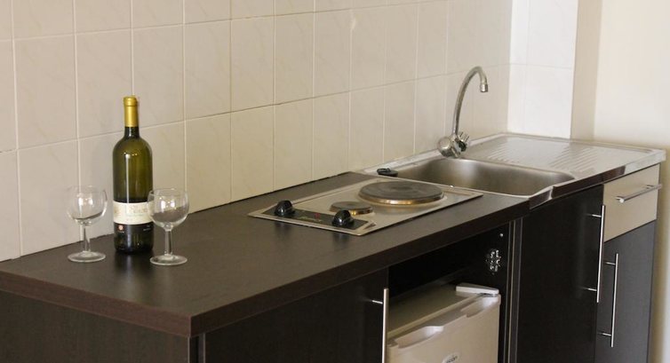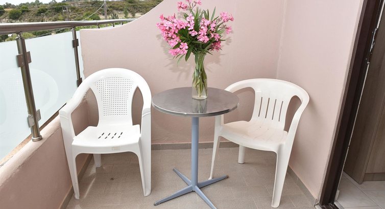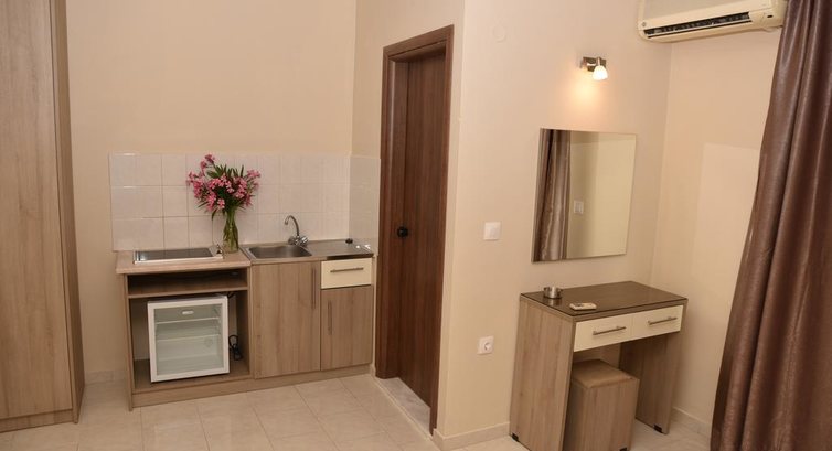 Типи номерів: • 12 Studio Room (25 м2, макс. розм. 3 чол., вид на сад або басейн, одна спальня та ванна, обладнаний кухонний куточок, вікна та балкони у всіх номерах). • 26 Superior Studio (25 м2, макс. розм. 3 чол., вид на сад або басейн, одна спальня та ванна, обладнаний кухонний куточок, вікна та балкони у всіх номерах).У номері: • душ • кондиціонер (7 євро на день) • міні-холодильник (безкоштовно) • електрочайник (безкоштовно) • електроплита (безкоштовно) • стіл і стільці • wi-fi (платно) • сейф (безкоштовно)