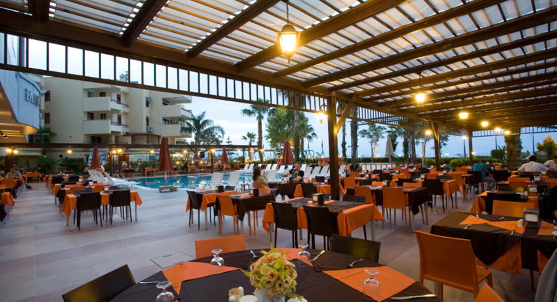 Отдыхали в этом отеле уже второй раз. Считаю, что главное достоинство отеля (как уже было отмечено в других отзывах) - это его расположение: центр Кемера (в пешей доступности магазины, кафе, базары по определенным дням и т.д.), первая береговая линия. Территория отеля достаточно компактная, но имеет все необходимые условия для непритязательных туристов (ресторан, бассейн, бар, вечерняя программа проводилась через день возле бассейна). Полотенца для бассейна и пляжа выдают на ресепшн под залог 10 долларов, в конце отдыха залог возвращается. Пляж галечный, море чистое.