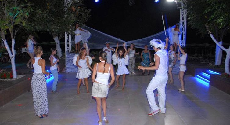 Анимация очень ненавязчивая, зазывают не всегда и не очень громко, но есть расписание и аниматоры все говорят на русском и почти все из стран бывшего СССР, так что обо всем их можно расспросить. Утренняя гимнастика, волейбол (до и после обеда), водная аэробика, дартс (до и после обеда), позднее должны были добавить стрельбу из винтовок и боччу. Вечером каждый день мини диско для детей и потом каждый раз какое-нибудь шоу (акробатов, магическое, цирковое-детское, пенная вечеринка, король отеля, мистер и миссис отеля, живая музыка, иногда мультики на проекторе крутили). В общем, для спокойных пар и семей с детьми самое то.