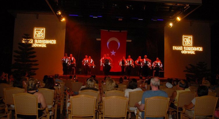 Вечером приглашаются артисты и показывают в амфитеатре интересные шоу.