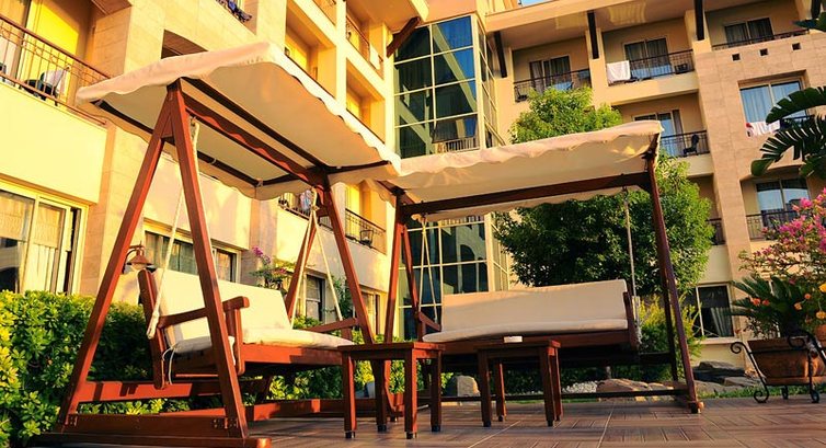 Сам отель маленький,но много и не нужно,хватает и места на пляже и у бассейна.Территория продуманна до мелочей, и качели и столики у бассейна рассполагают посидеть на закате)) На ресепшн дали всю информацию при заезде и мы получили номер боковой,но с видом на море. В отеле очень много пожилых и прям стареньких пенсионеров из Европы. Там и Германия и Голландия, Дания и т.д. Поэтому отель только для спокойного и тихого отдыха без шумов и громкой музыки).