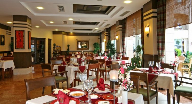 Бари та ресторани: головний ресторан розрахований на 420 осіб, критий з кондиціонером та терасою, в готелі є дитяче та дієтичне меню; бар на пляжі (10:00-18:00), бар біля басейну (10:00-18:00), лобі-бар (10:00-00:00), сервіс-бар (10:00-00:00) ), Gozde Pub (14:00-00:00) - безкоштовно; диско-бар (24:00-02:00) – вхід безкоштовно, напої платно. 3 ресторани A"la Сarte: китайська, італійська, турецька - відвідування 1 ресторану за час проживання безкоштовно.